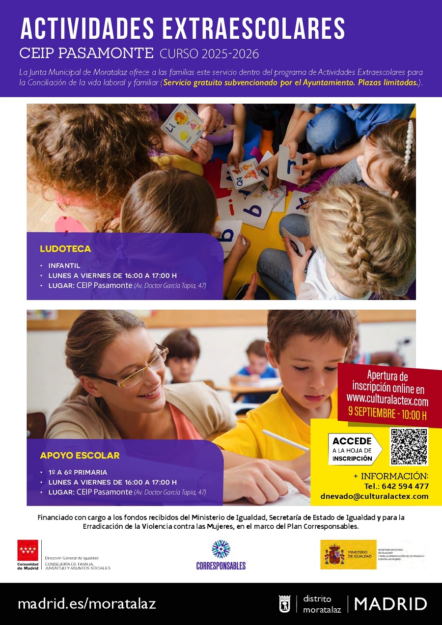 La Junta Municipal de Moratalaz ofrece a las familias este servicio dentro del programa de Actividades Extraescolares para la Conciliación de la vida laboral y familiar (servicio gratuito subvencionado por el Ayuntamiento. Plazas Limitadas)